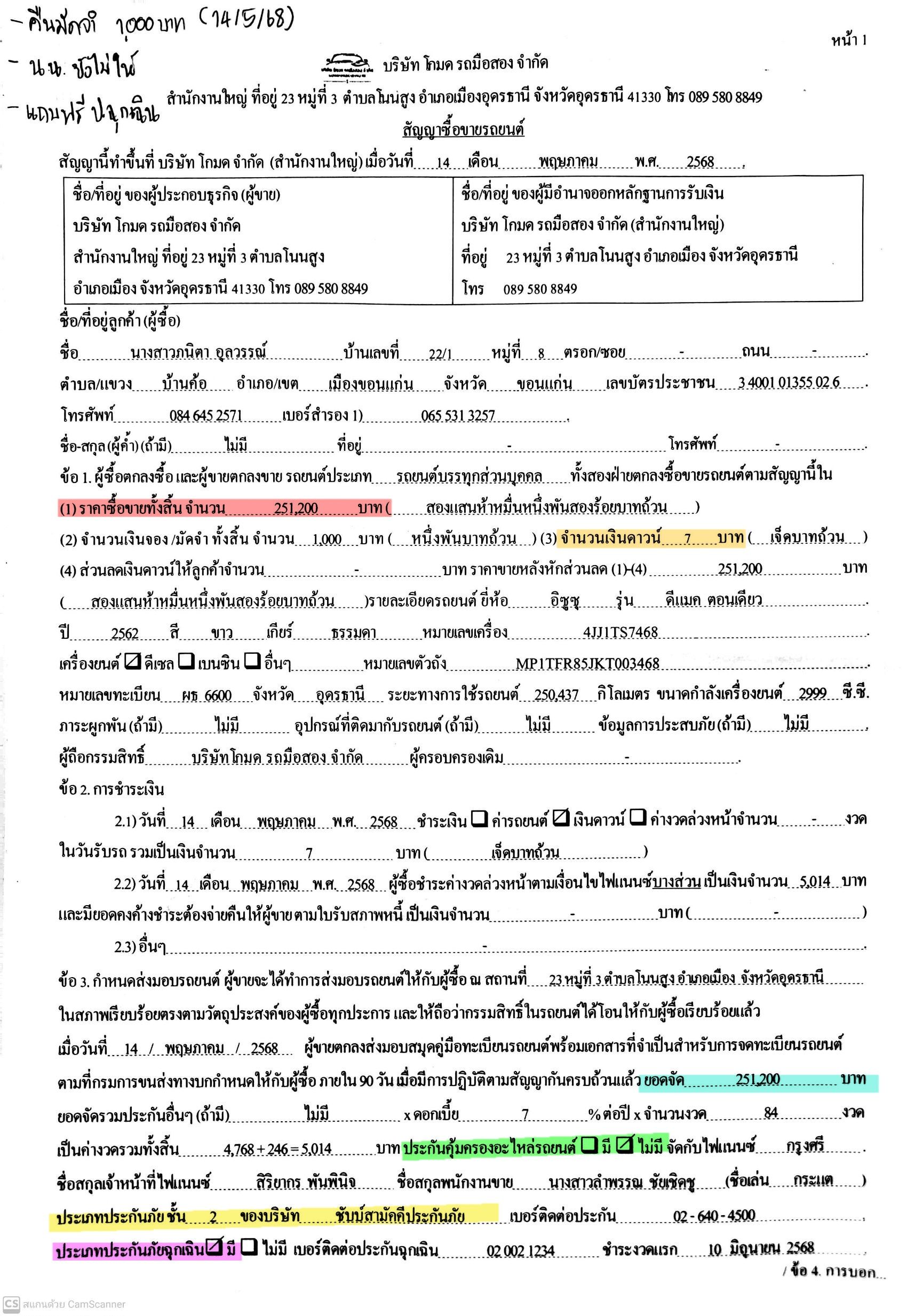 3 04/12/2025 มอตโต้ ขอนแก่น 0 ผพ 2356 กระบะแค็ป NISSAN