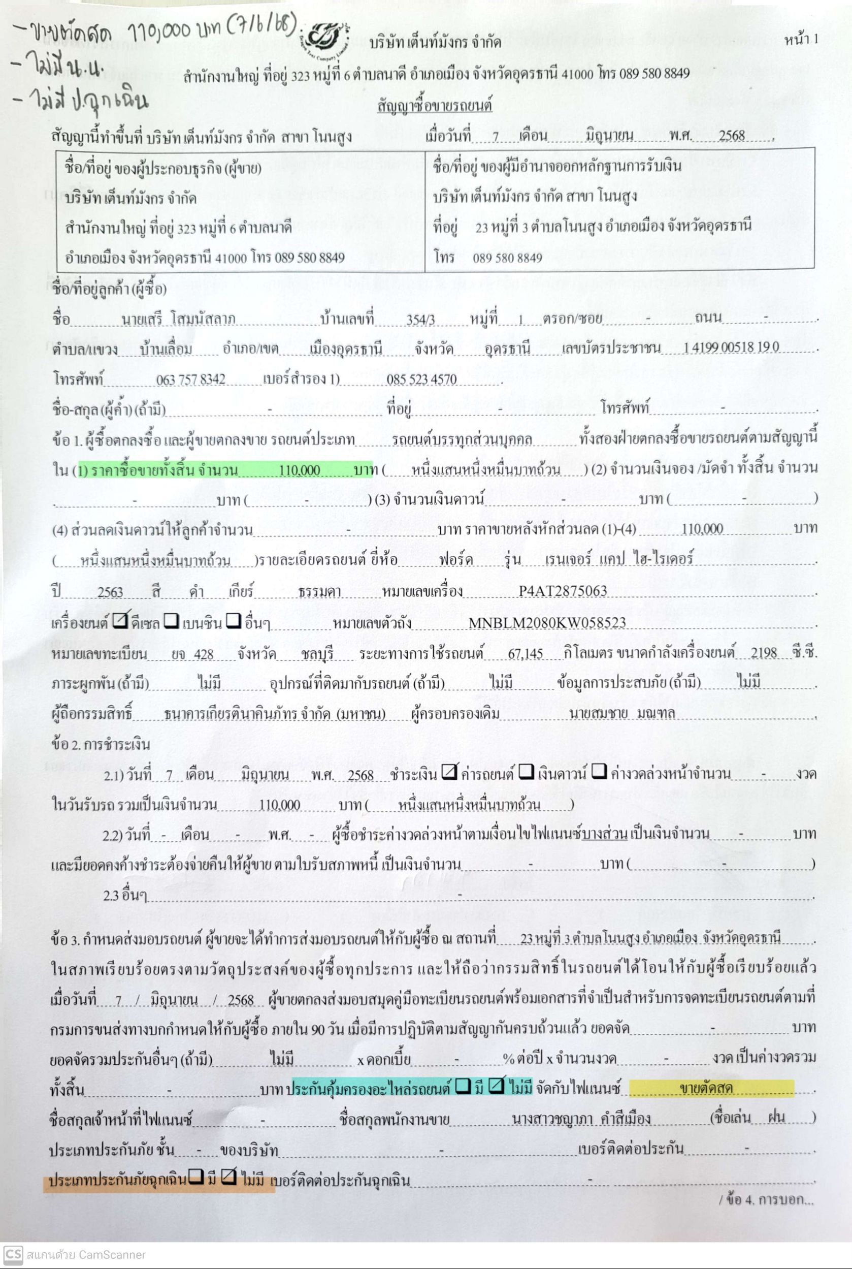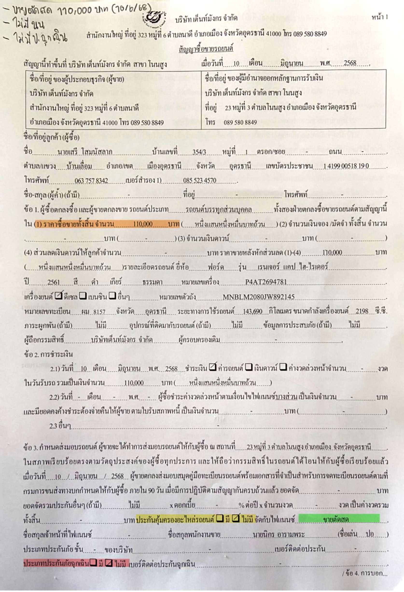 41 07/06/2025 ม็อตโต้ 0 ยจ428 กระบะแค็ป FORD