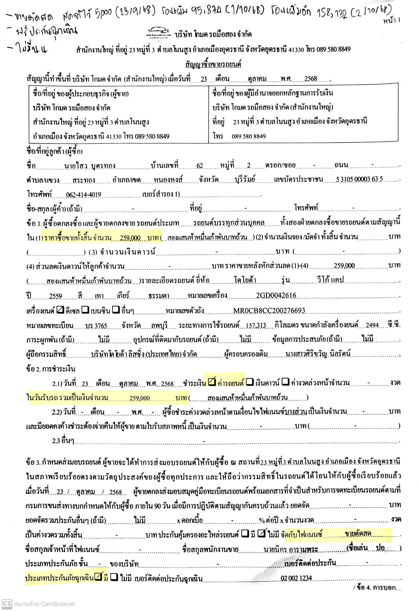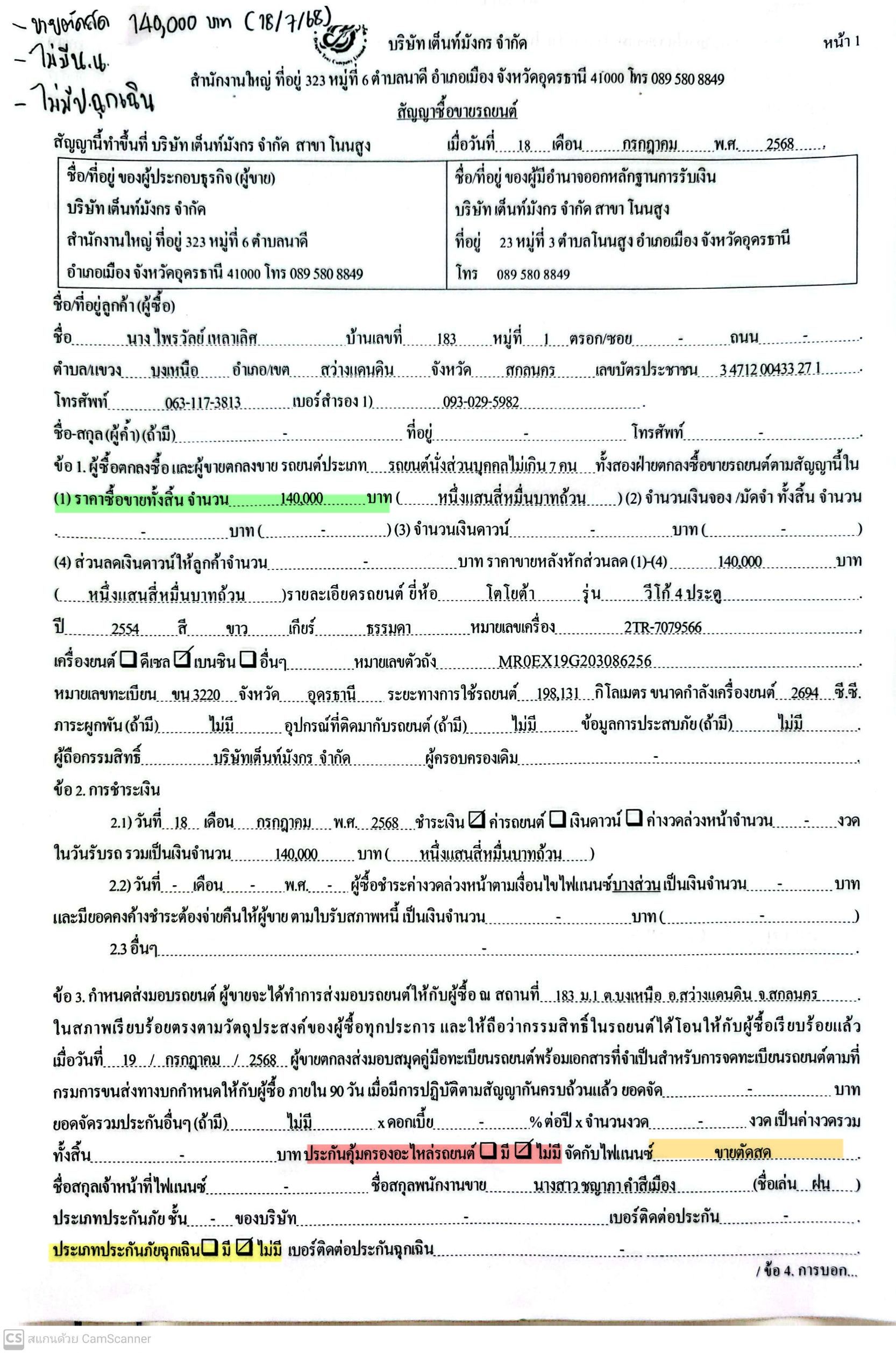 5 24/11/2025 ม็อตโต้ 0 3ฒพ3614 ตอนเดียว TOYOTA