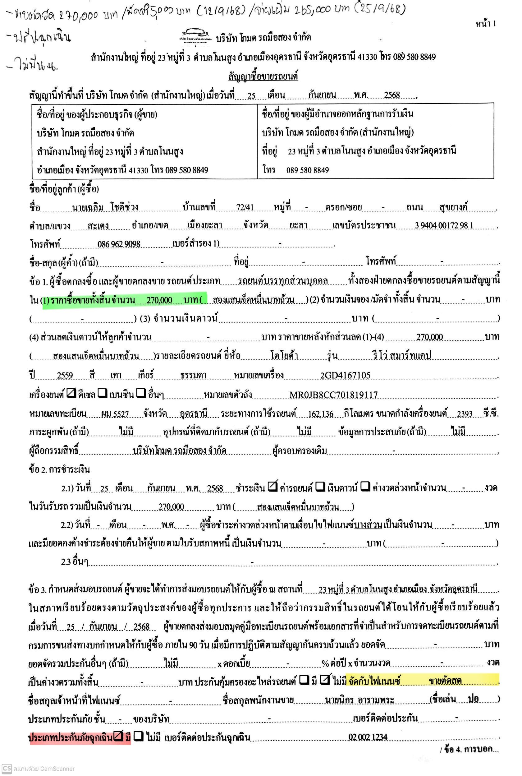 18 27/09/2025 ม็อตโต้ 0 2ฒษ2091 กระบะแค็ป TOYOTA