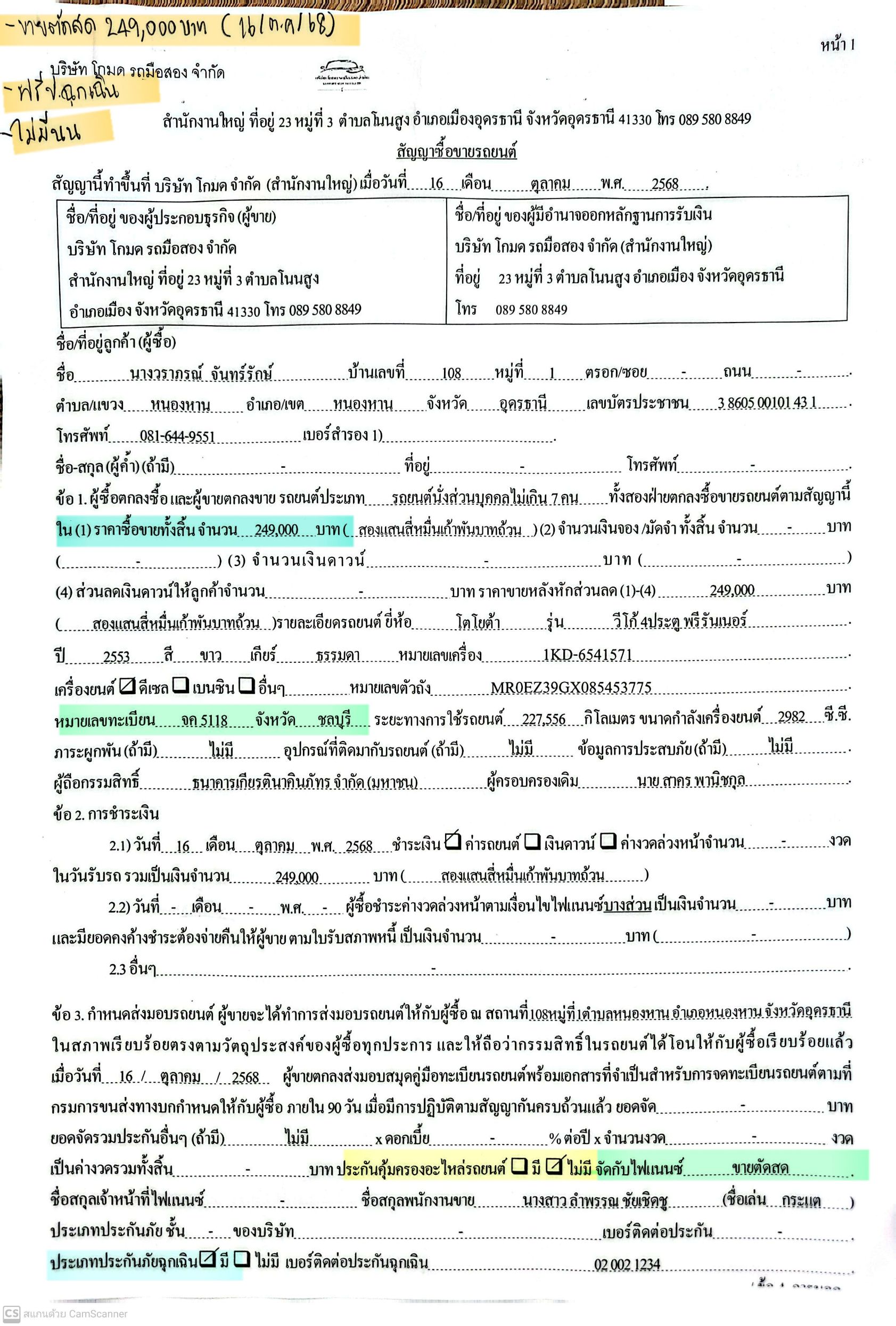 1 11/12/2025 ม็อตโต้ 0 2ขค7452 แวน 7 ที่นั่ง ISUZU