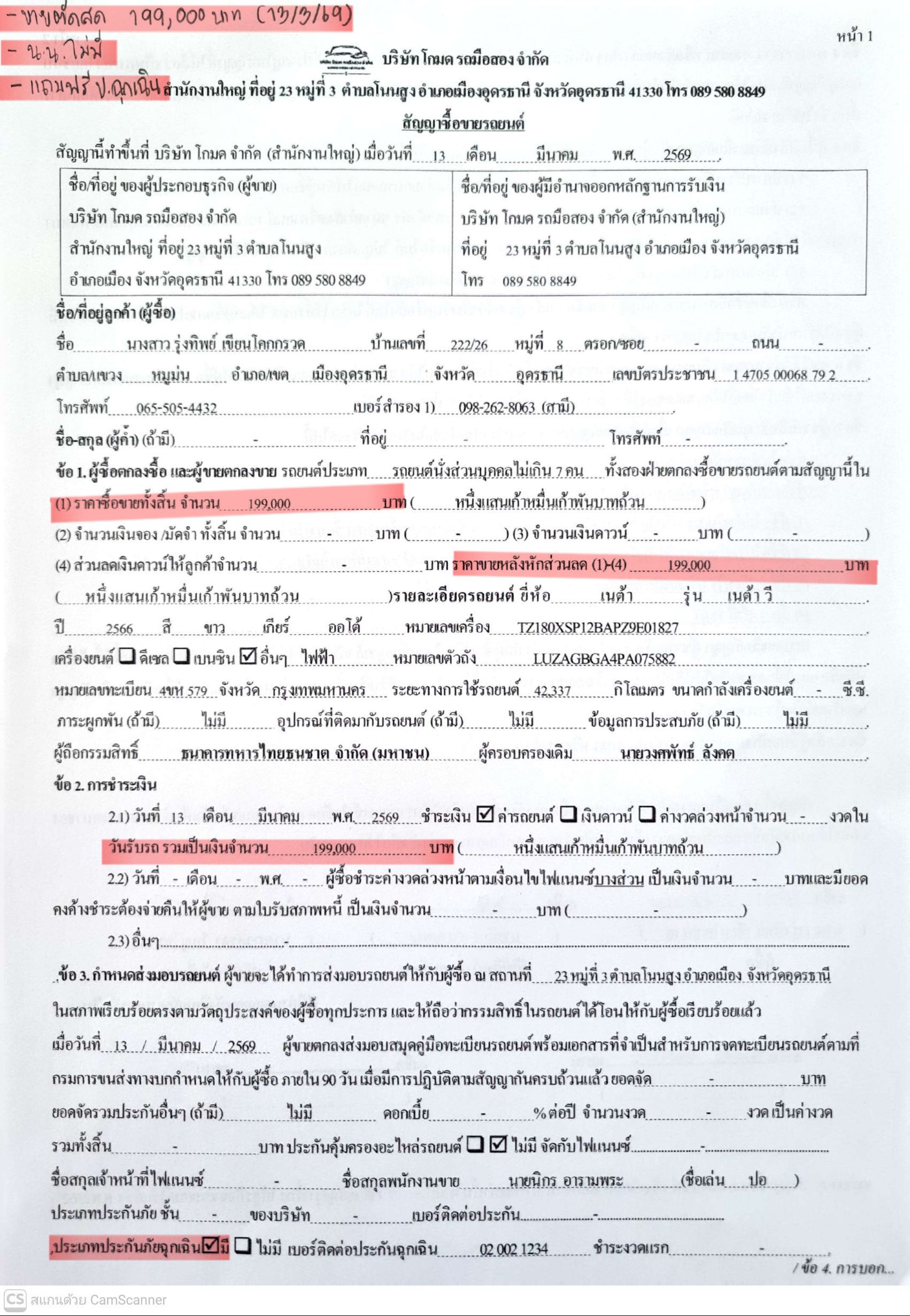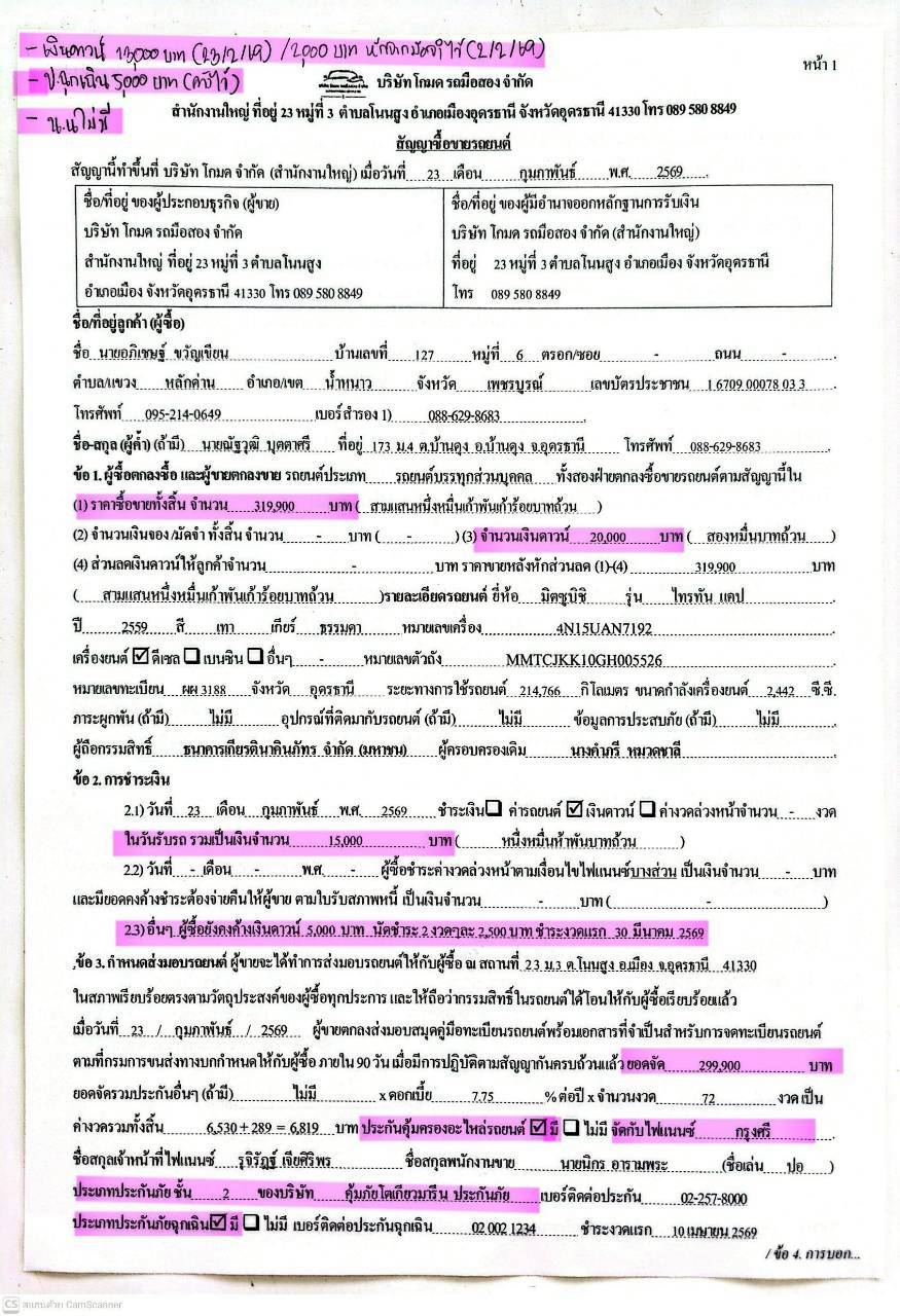 23/02/2026 | ม็อตโต้อุดร | 0 | ผผ 3188 | กระบะแค็ป | MITSUBISHI ไททั้น แคป เทา ปี59/2016 2.4cc ข้อมูลการขาย นายอภิเซษฐ์ ขวัญเขียน 095-214-0649 จัดกรุงศรี 6,819*72 ค้างดาวน์ 5,000 บาท นัดชำระงวดแรก 30/3/69(2,500) | ขายแล้ว | |